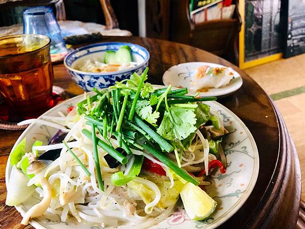這間越南雜貨小店+餐廳,是從日本部落客那邊看到的推薦餐廳,查了一下發現很多日本人對這間店評價蠻高的,最近有點想念越南菜所以也義無反顧就是衝了。因為也是在巷子裡,不太好找,外觀非常特別,裡面一樓是雜貨區,有販售的商品,兩樓是小小的餐廳,午餐我直接點了套餐,因為不喝咖啡所以他們給我芒果汁,非常好喝,有碗沙拉+越式蝦春捲,主餐是蔬菜拌麵,之後還有甜點,吃的撐到爆炸,這間蠻推薦食量大的人去試試,而且場地雖然不大,但是擺設都很有獨特風格,午後坐在那邊放空喝咖啡也很舒服放鬆。
